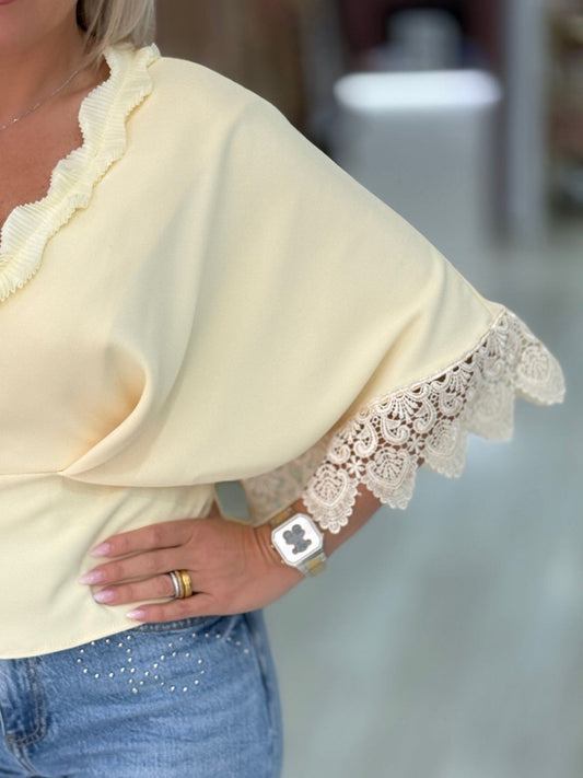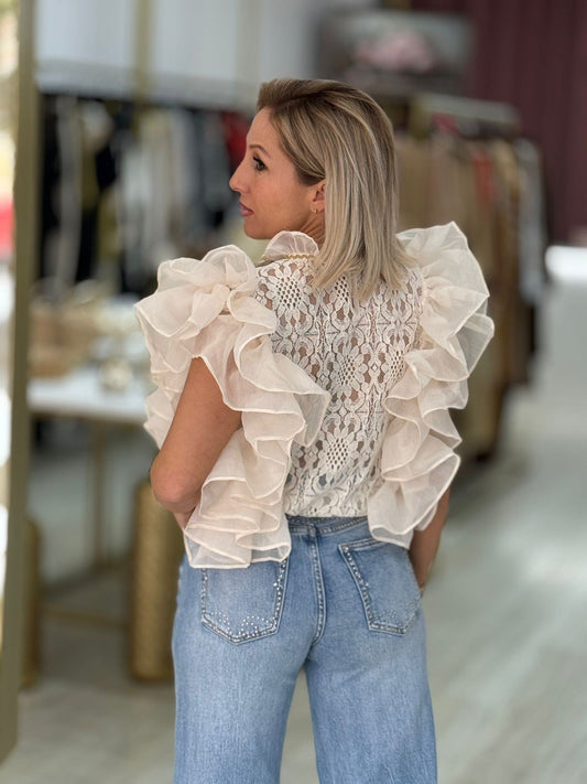 Blusa rendada com folhos