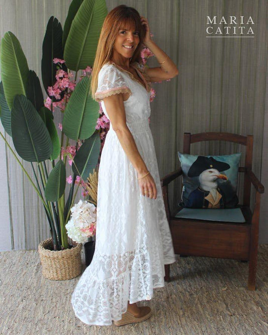 Vestido comprido rendado