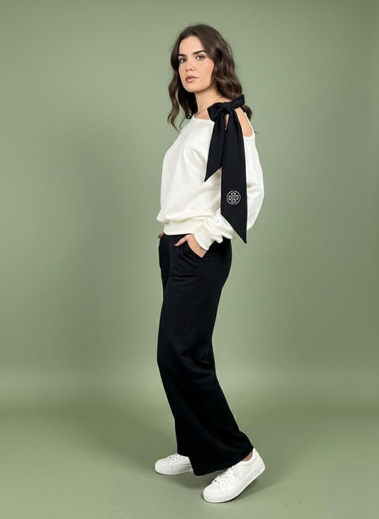 Camisola curta com manga comprida em renda