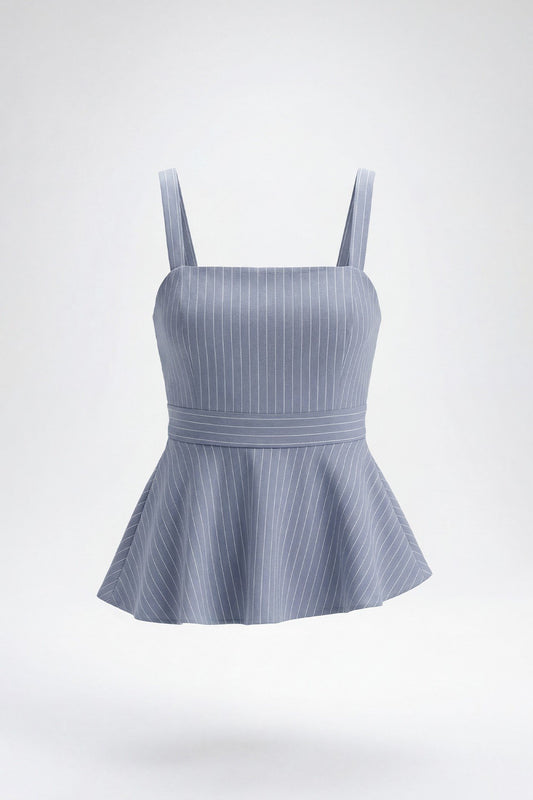 Top Peplum com Riscas e Alças Removíveis