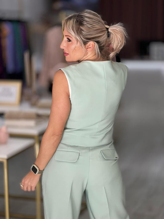 Colete curto com fecho em trespasse
