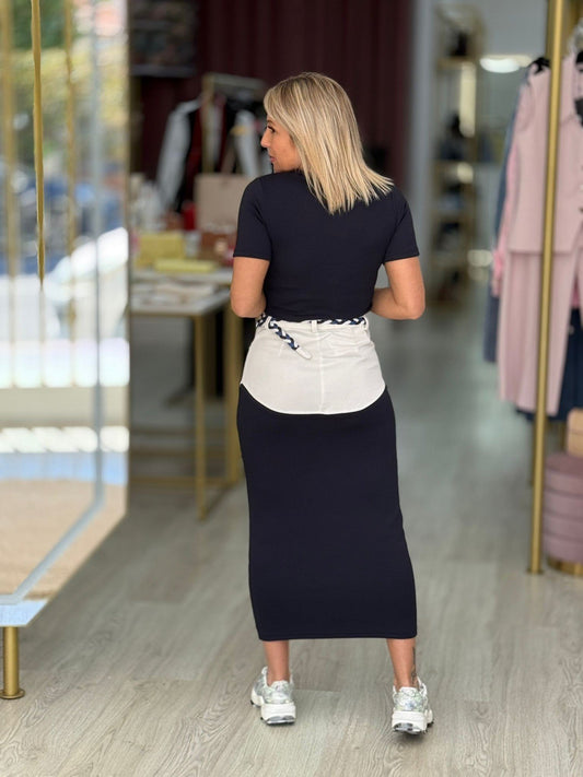 Saia Comprida com Tecidos Combinados