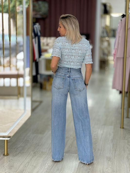 Calças de ganga cintura cruzada