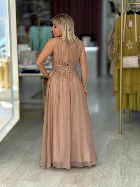 Vestido comprido plissado