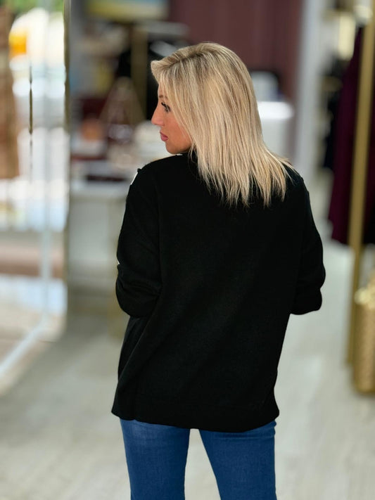 Camisola com jacquard e mangas lantejoulas