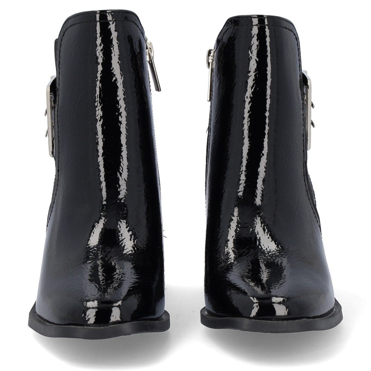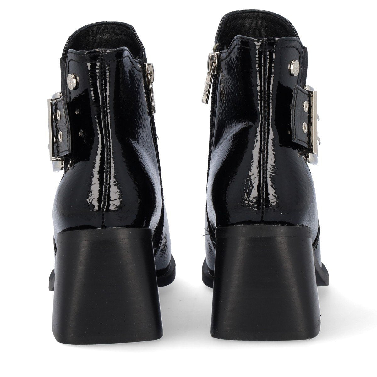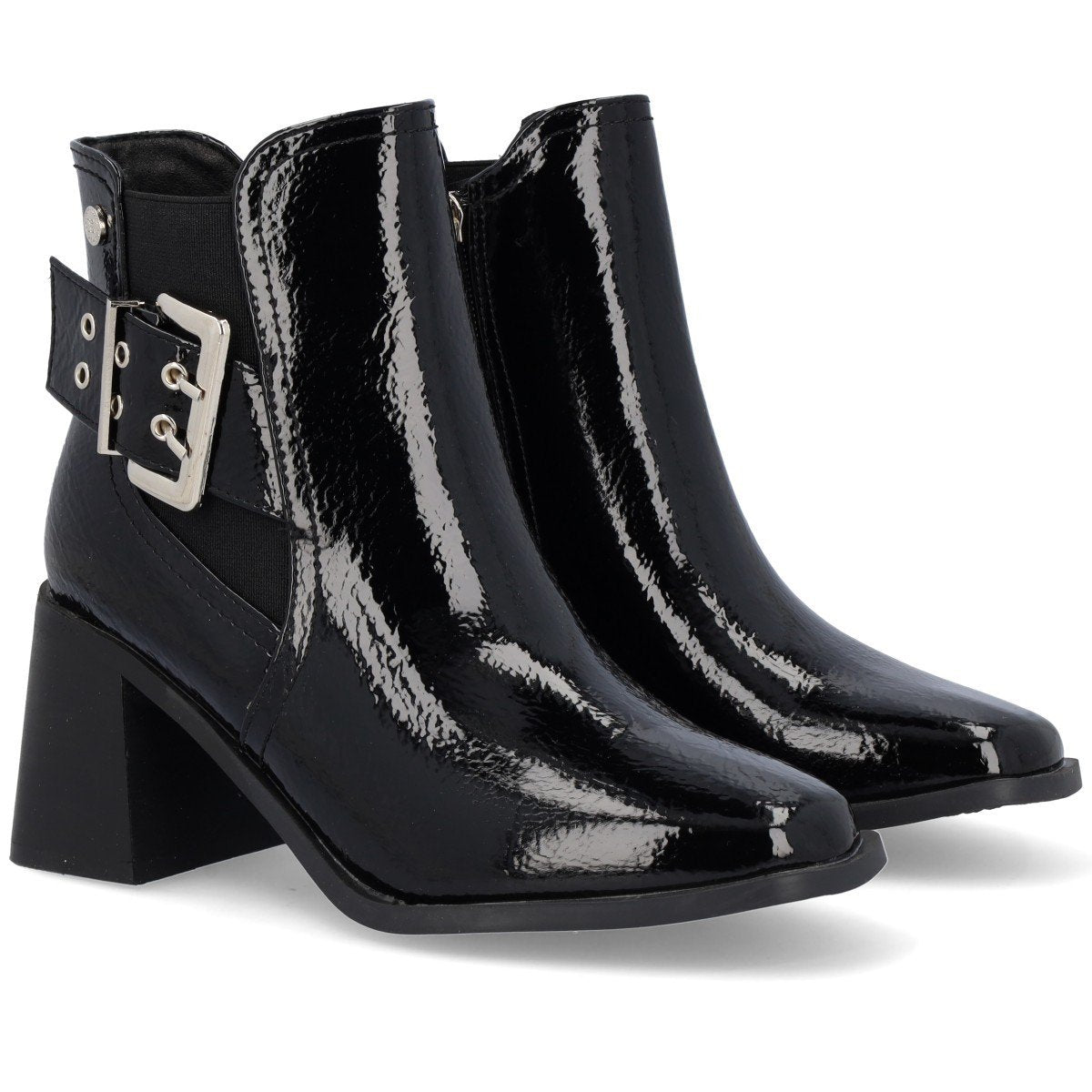 Bota feminina de cano curto da marca Xti. Confeccionada em couro envernizado de alta qualidade, com salto elegante revestido em imitação de madeira, que confere um toque sofisticado e moderno. O design estilo Chelsea destaca-se pela praticidade graças aos painéis laterais elásticos, enquanto a fivela lateral prateada acrescenta um toque diferenciado e elegante. Esta bota de cano curto é ideal para quem procura um calçado versátil que combine elegância e conforto. Perfeita para complementar looks casuais e formais, sola antiderrapante garante segurança e estabilidade a cada passo. Palmilha removível.