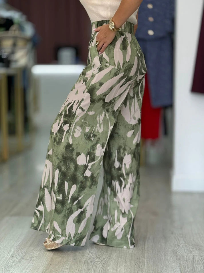 Calça de corte wide leg em tecido fluido estampado, que garante movimento e leveza ao visual. A cintura subida com elástico na parte posterior proporciona conforto e um ajuste descontraído, enquanto os bolsos laterais acrescentam funcionalidade. Uma peça versátil e estilosa, ideal para looks casuais com um toque sofisticado.