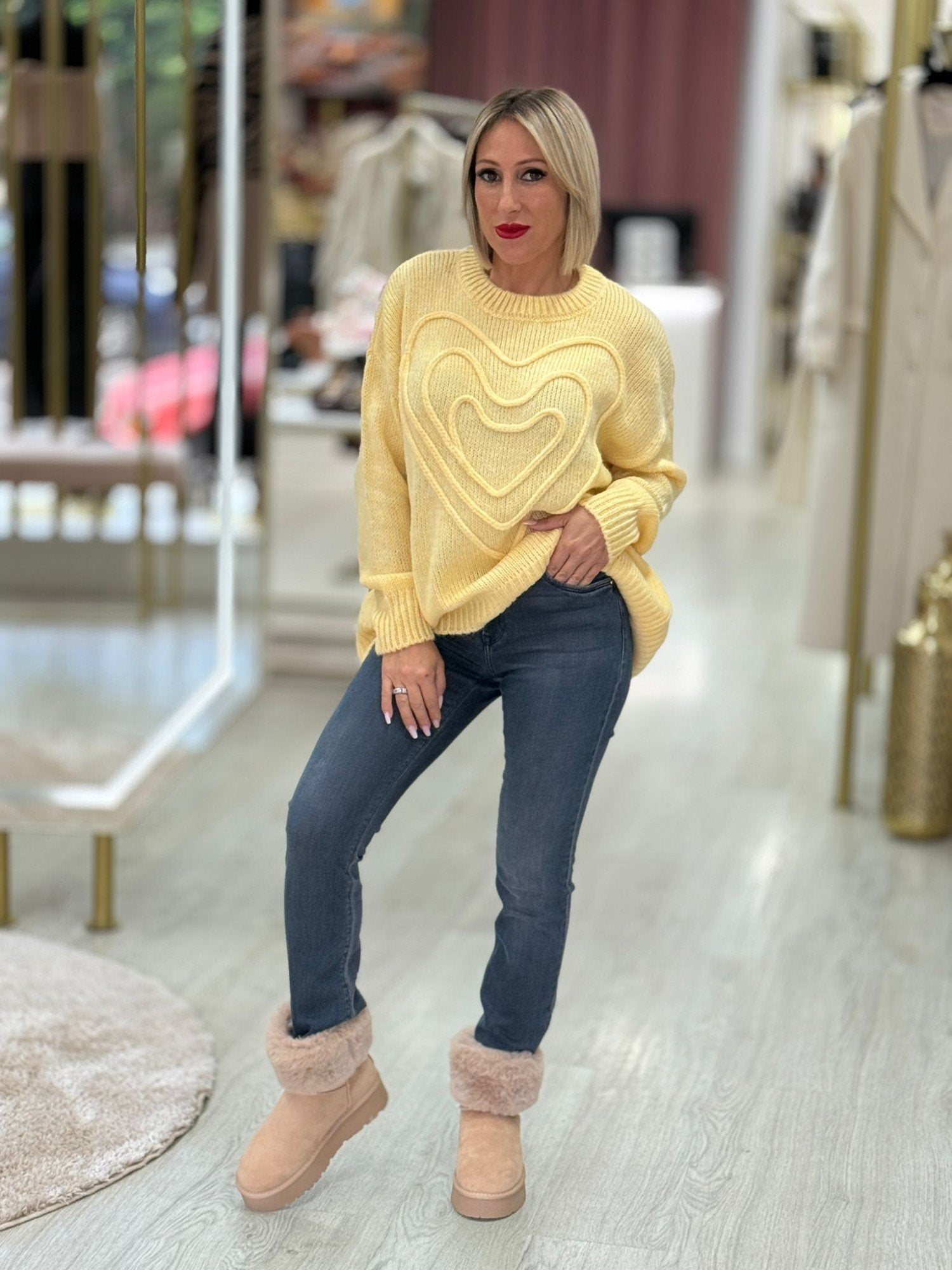 Camisola decote redondo com bordado coração na frente.
