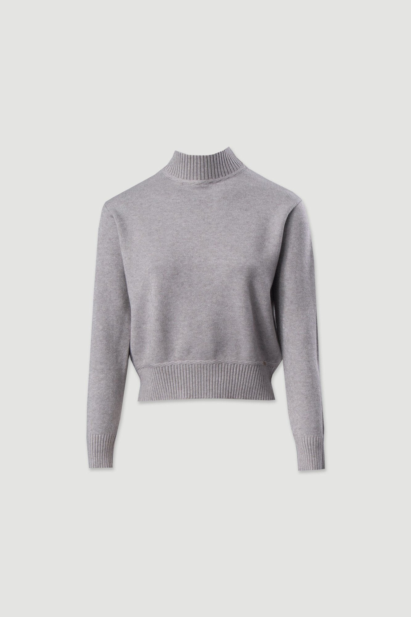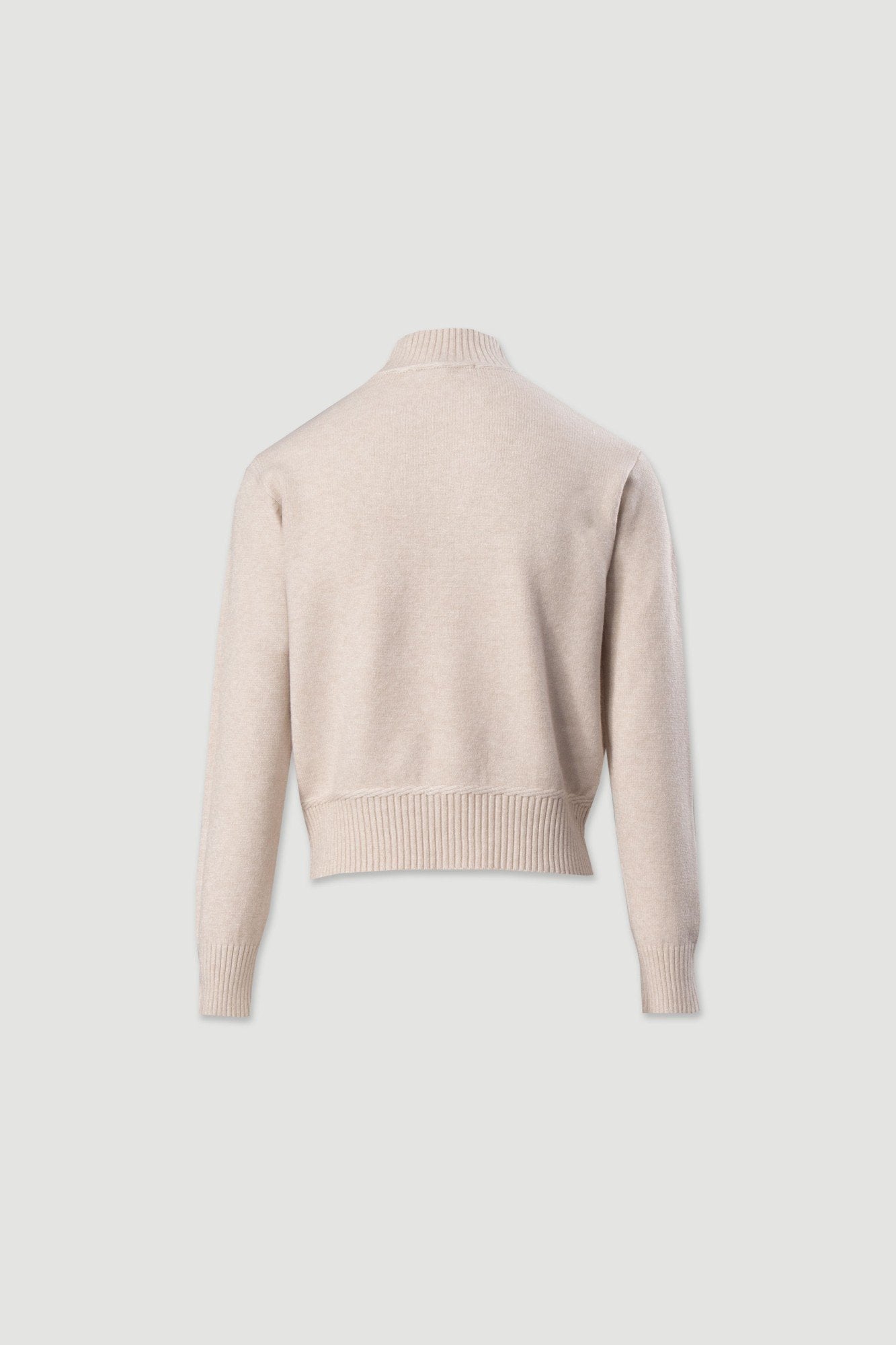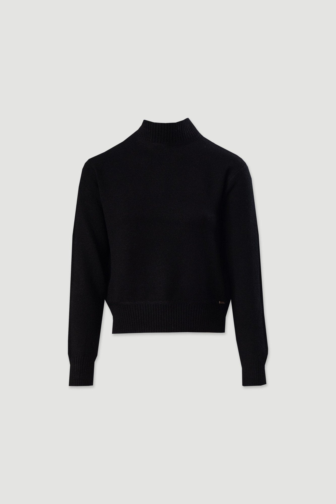 Camisola de malha com gola alta canelada, que valoriza a cintura através do acabamento largo em ribe. A manga comprida termina em punho canelado, garantindo conforto e um ajuste elegante. O design minimalista e intemporal torna esta peça perfeita para coordenados sofisticados ou looks mais descontraídos.
