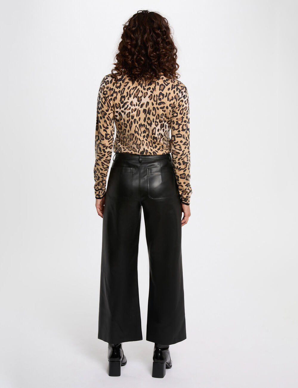 Casaco malha fina decote em V em animal print. Fecha com botões.