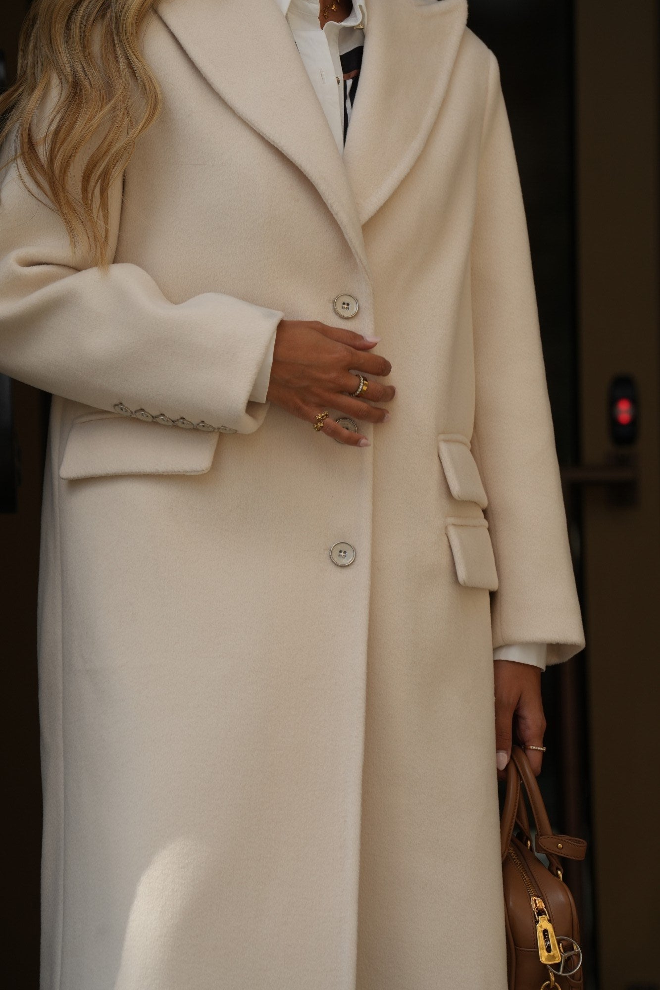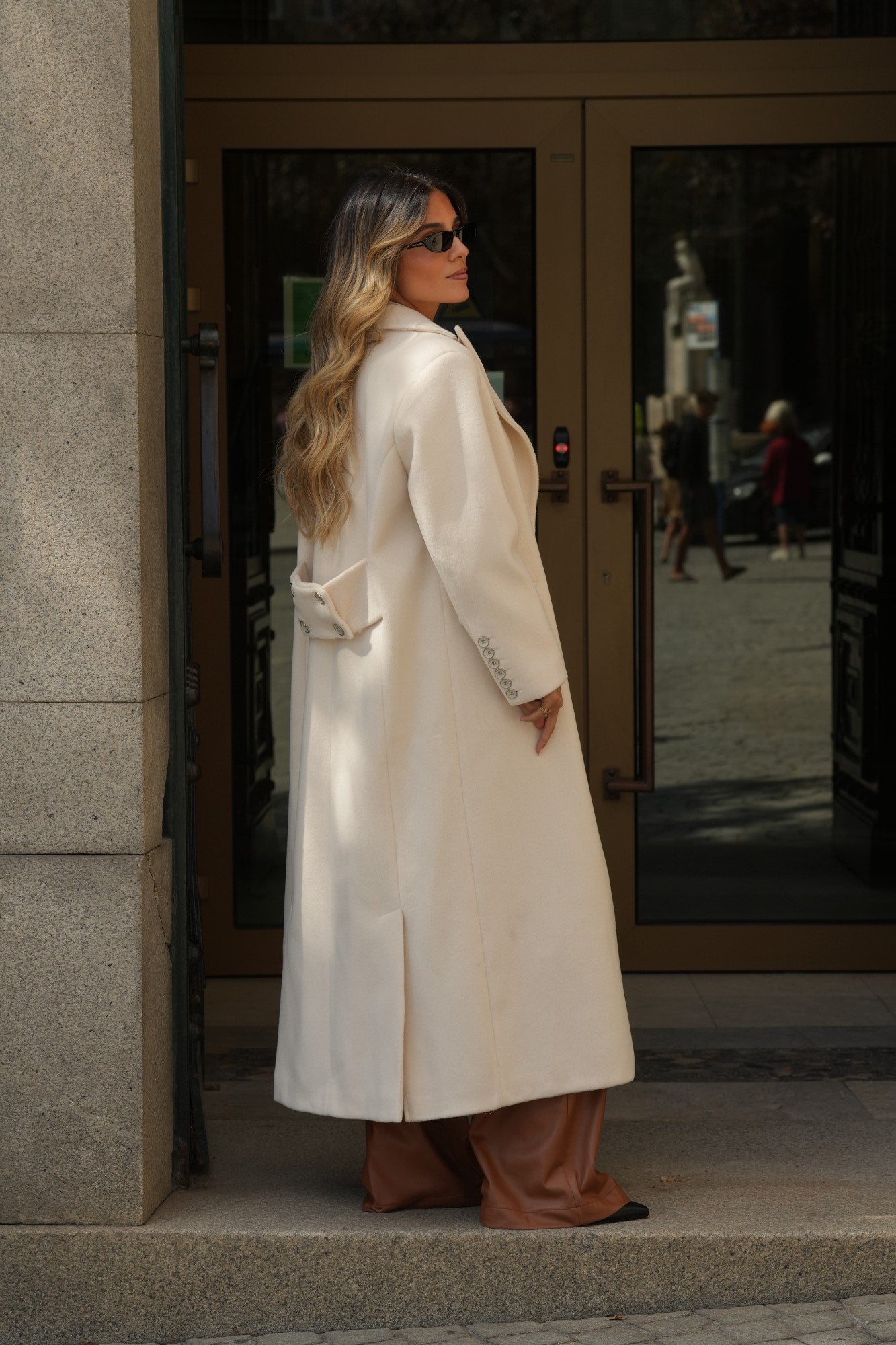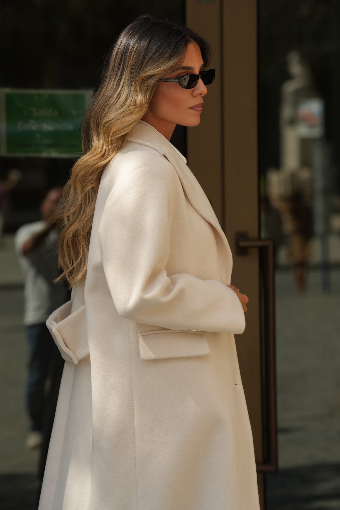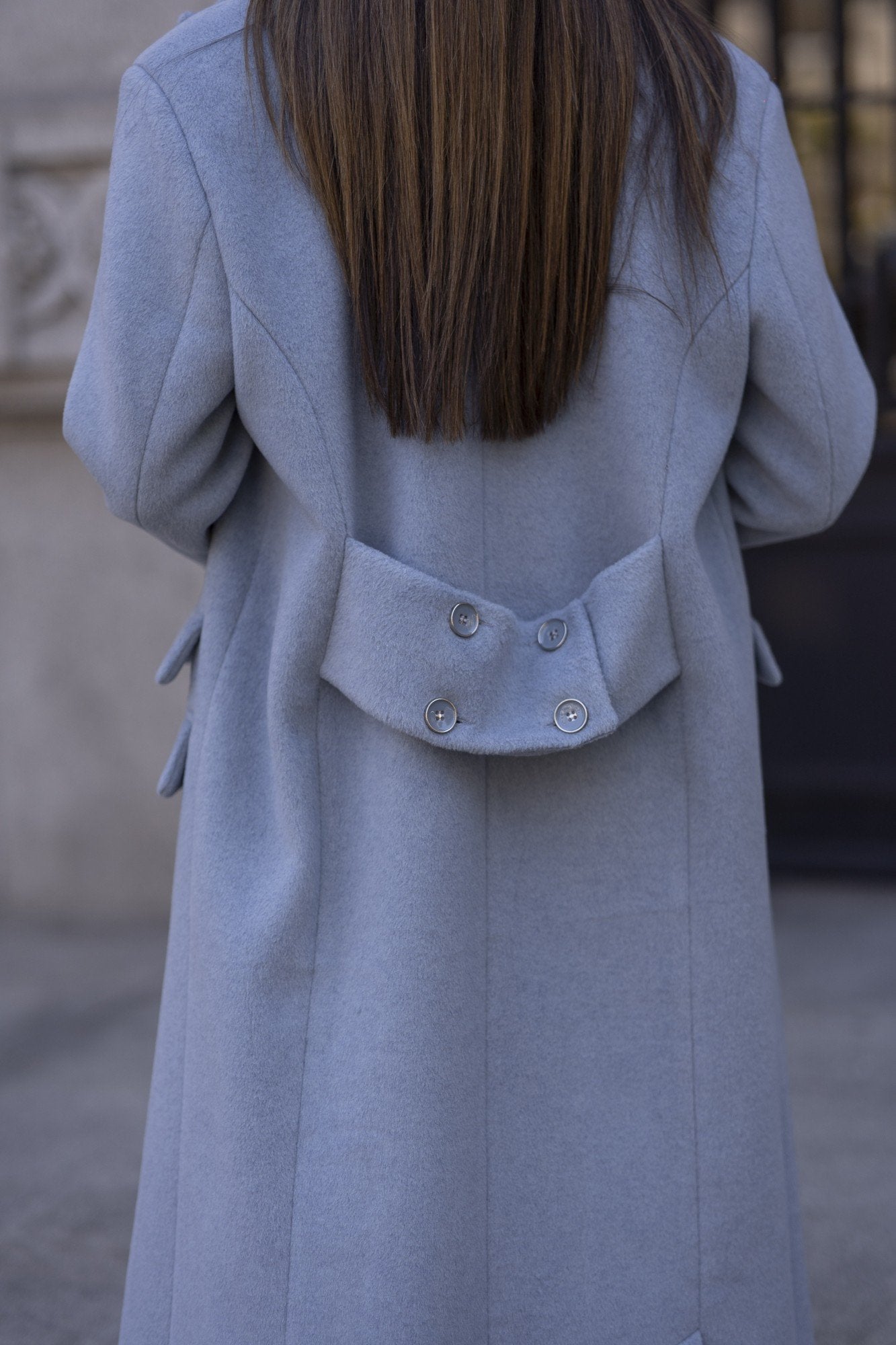 Casaco comprido Sahoco em lã premium. O design estruturado com lapelas clássicas e abotoamento frontal transmite elegância intemporal. Detalhe posterior com faixa e botões para um ajuste refinado. Perfeito para completar coordenados elegantes em dias frios, combinando modernidade com sofisticação.