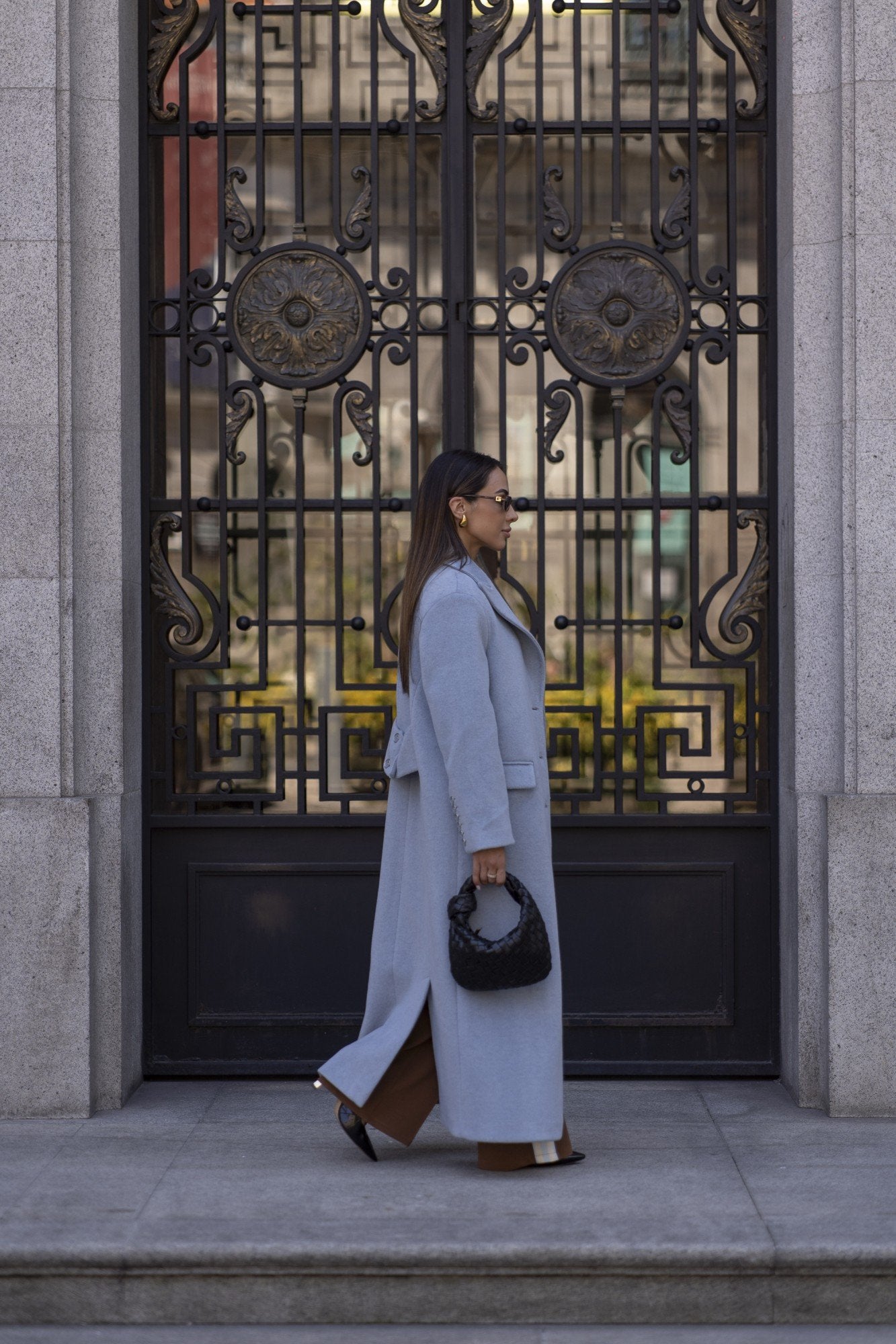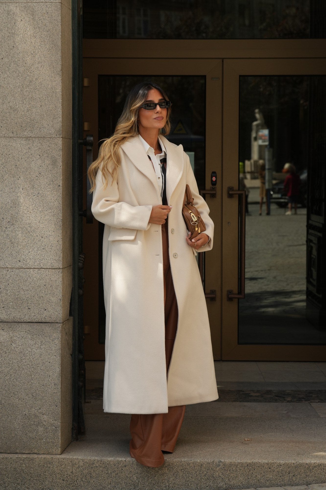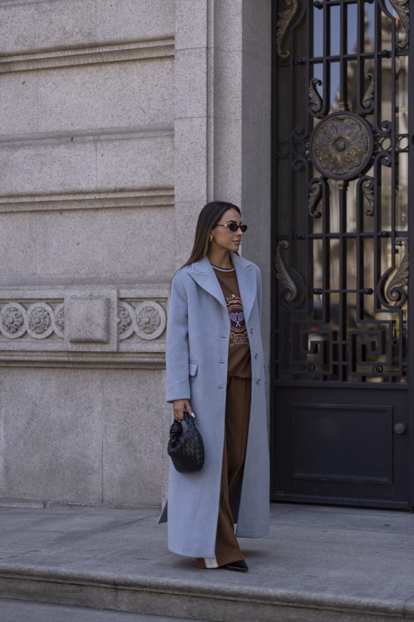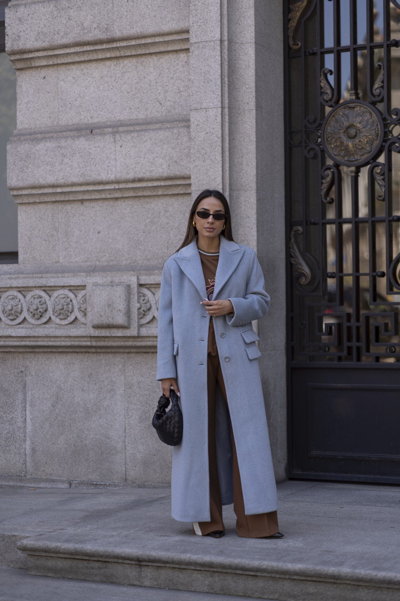 Casaco comprido Sahoco em lã premium. O design estruturado com lapelas clássicas e abotoamento frontal transmite elegância intemporal. Detalhe posterior com faixa e botões para um ajuste refinado. Perfeito para completar coordenados elegantes em dias frios, combinando modernidade com sofisticação.