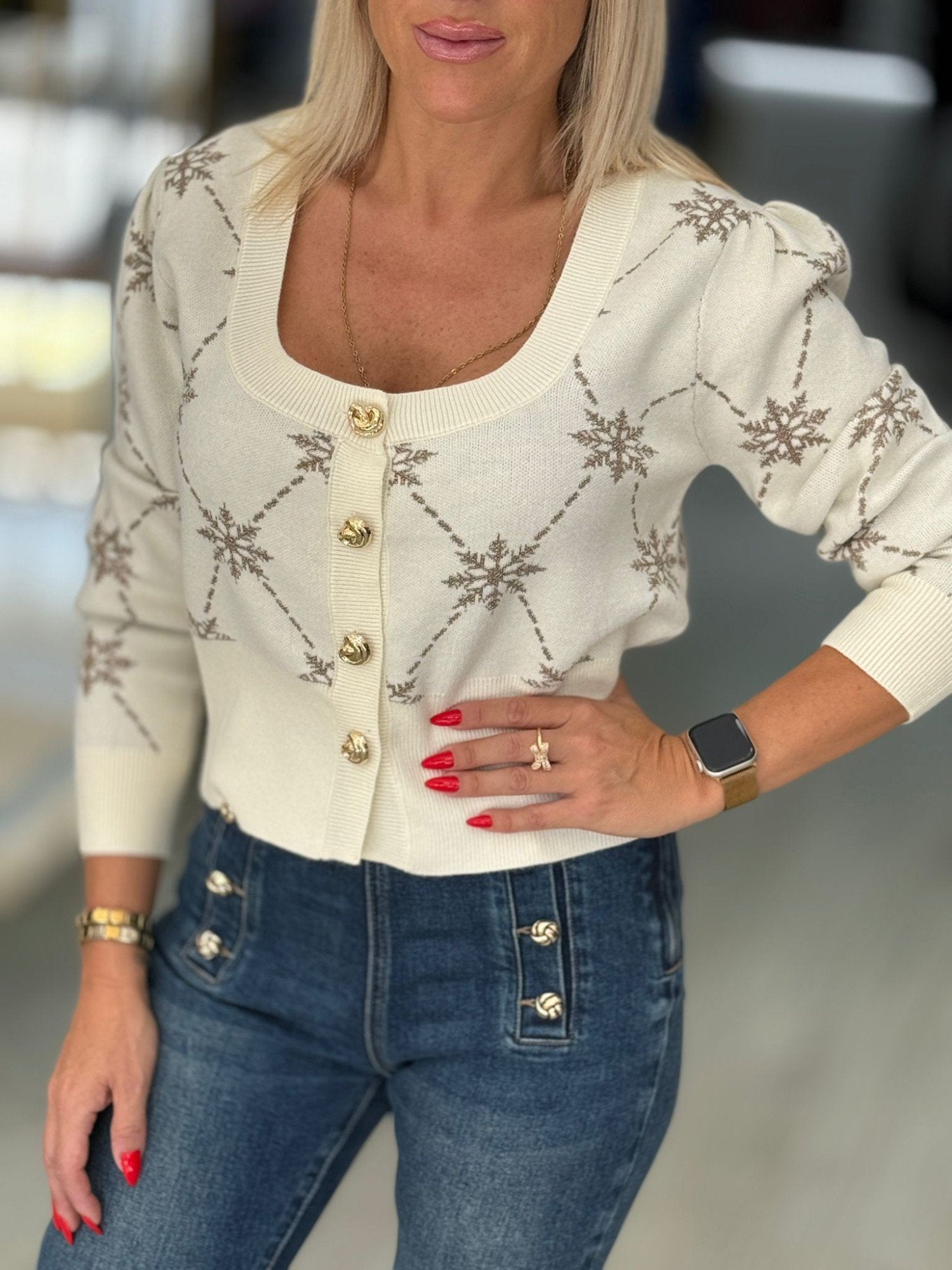 Casaco de malha. Gola redonda. Fechamento na frente com botões. Malha canelada nos punhos, cós e decote.