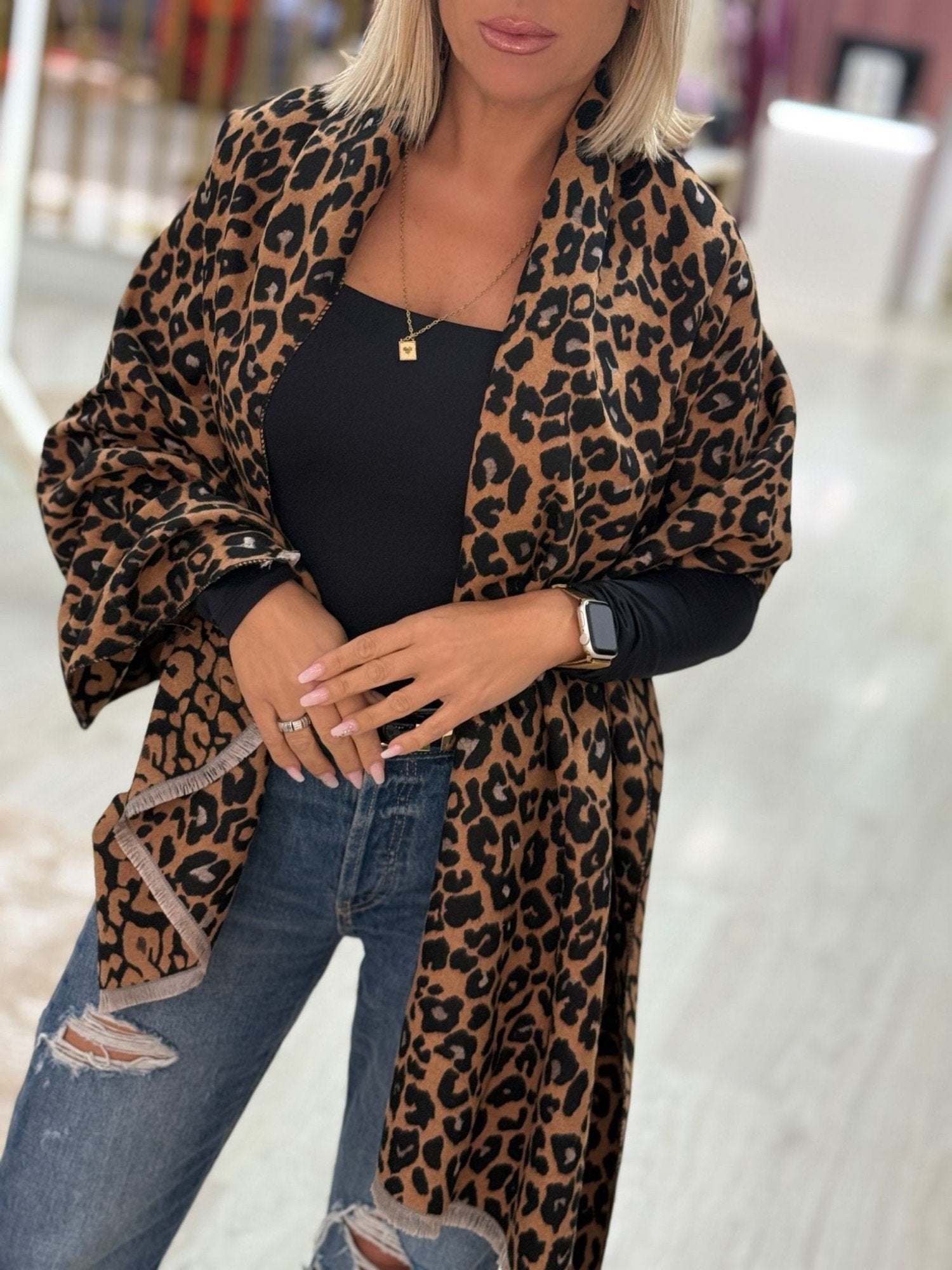 Echarpe com padrão animal.