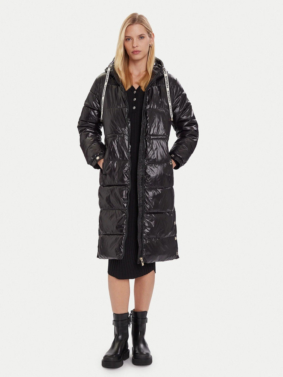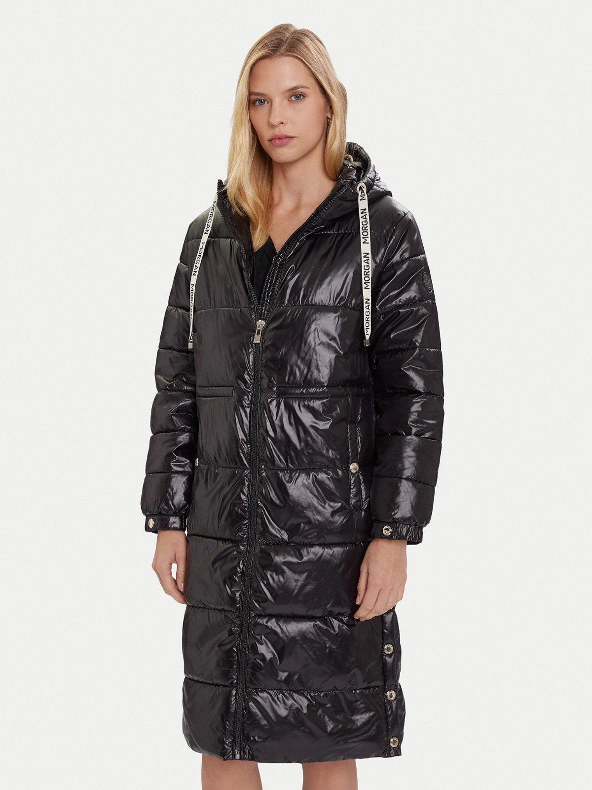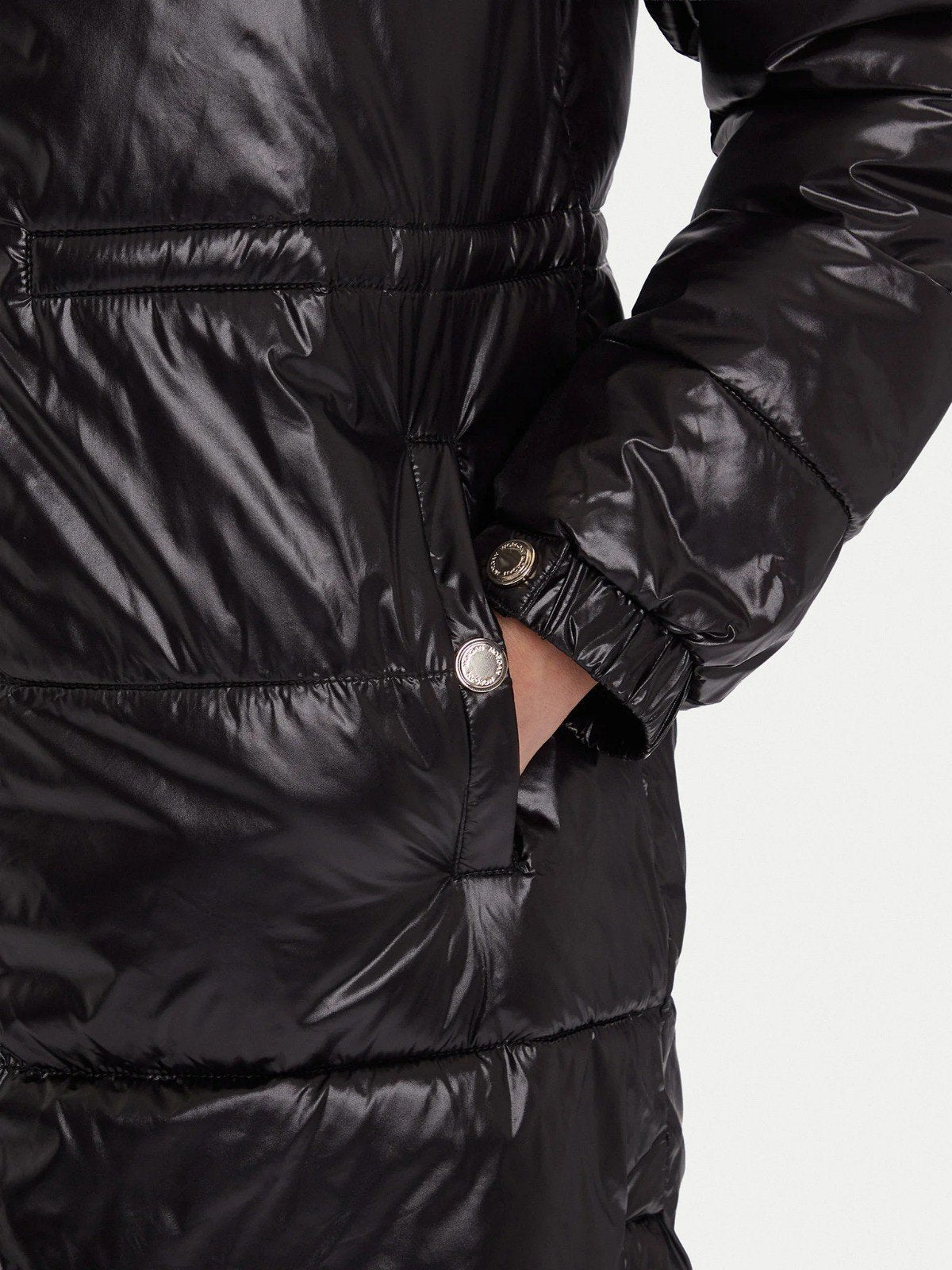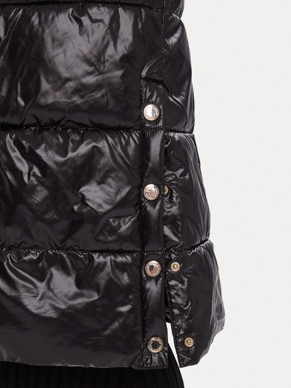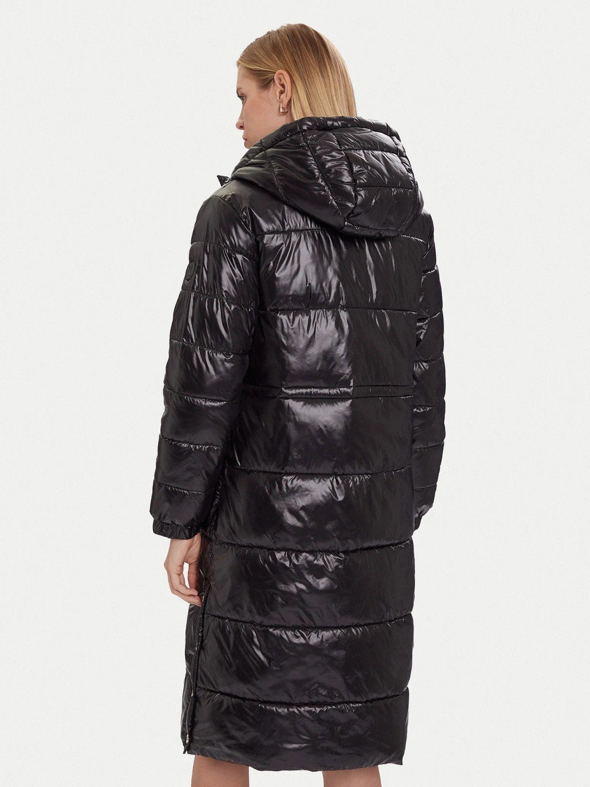 Casaco comprido acolchoado com efeito vinílico. Com fecho a todo o comprimento e capuz.