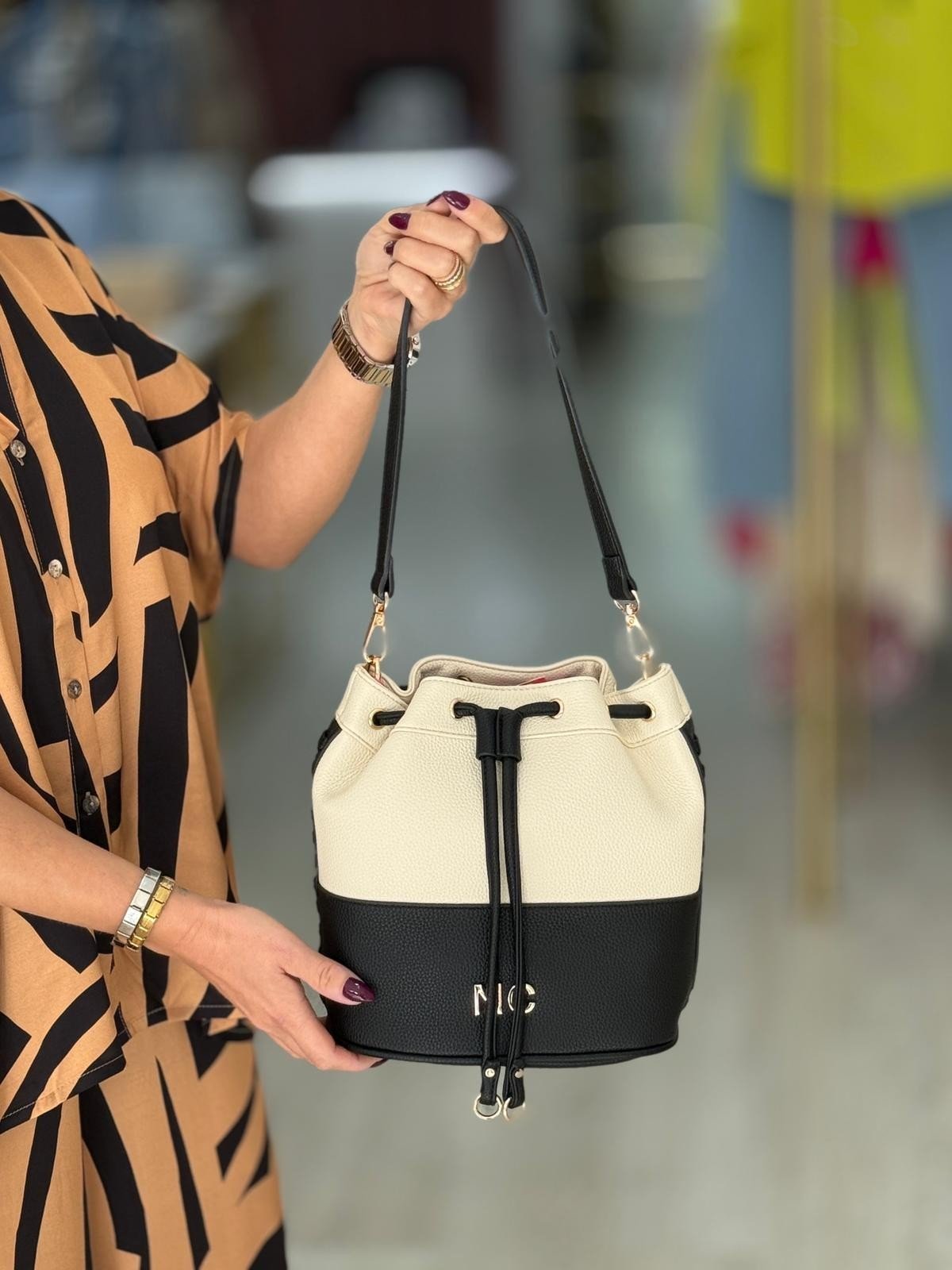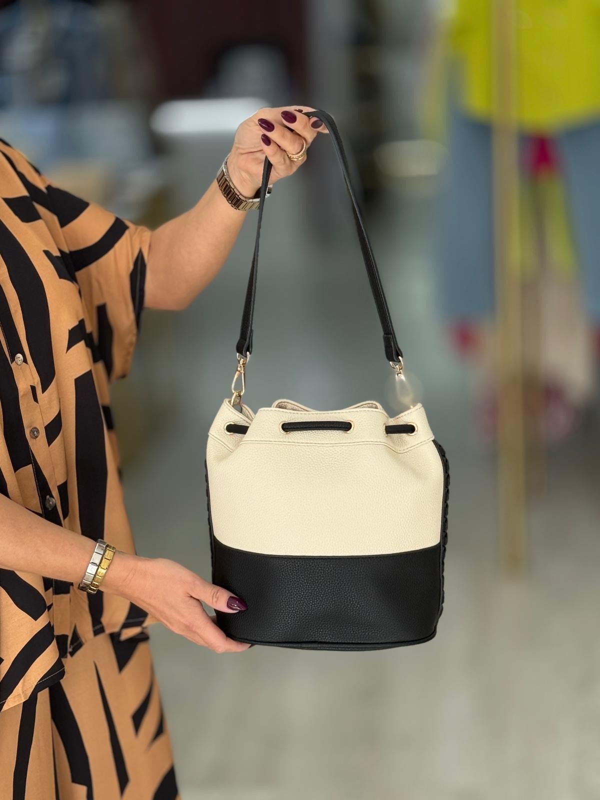 A bolsa saco trançada NOCO é uma das peças mais especiais da coleção. Um design atemporal que combina elegância, funcionalidade e aquele toque feminino que nunca sai de moda. Confeccionada em couro vegano de alta qualidade, apresenta um design bicolor cuidadosamente elaborado.