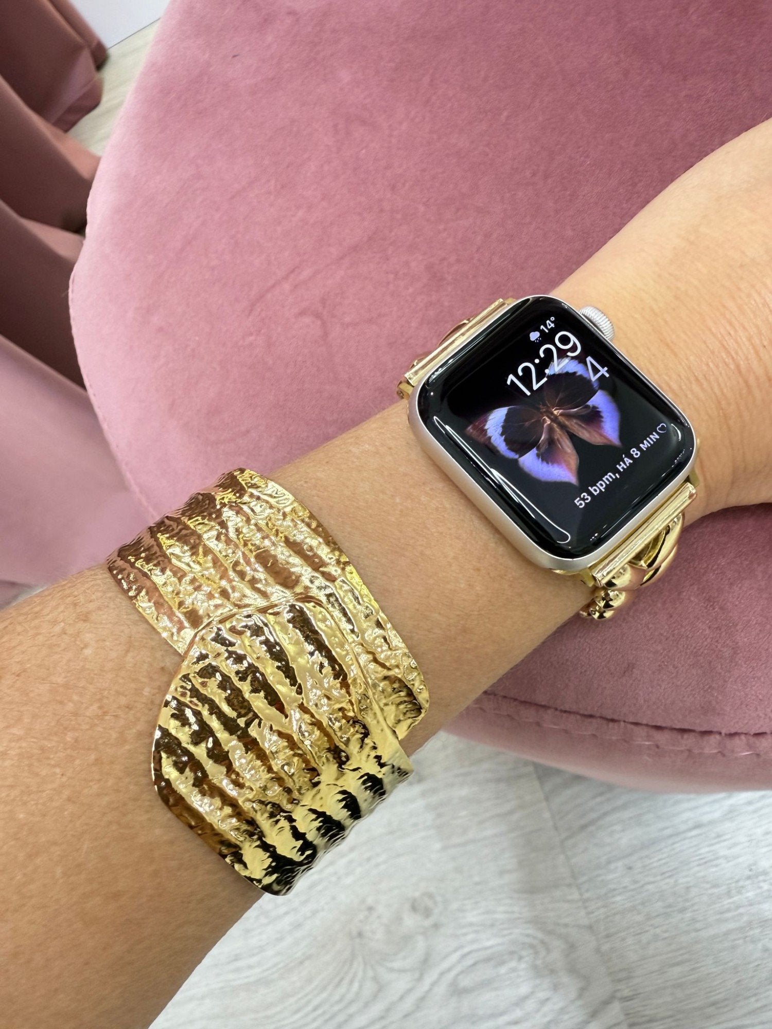 Pulseira em Aço com banho dourado. Ajustável ao pulso