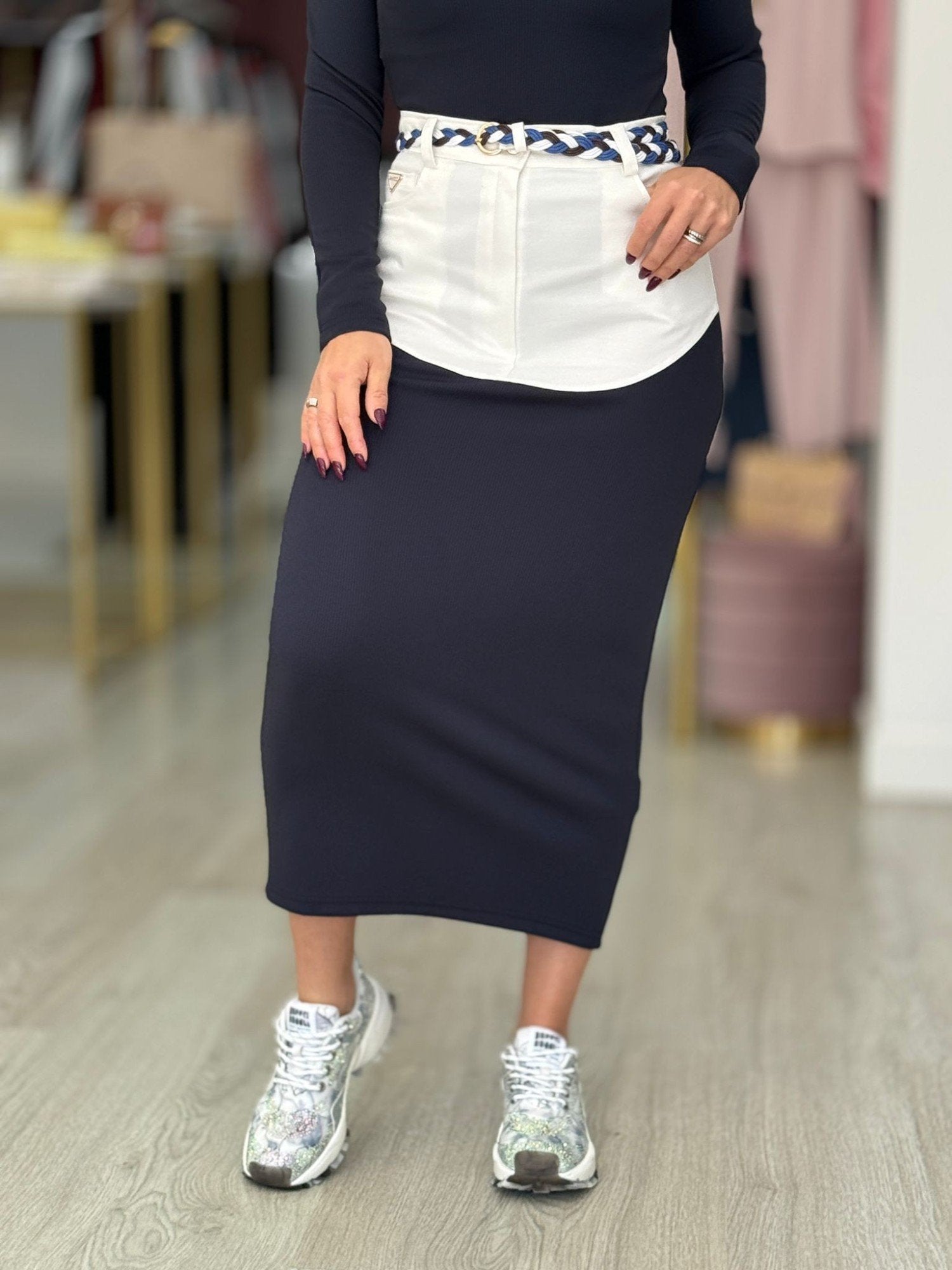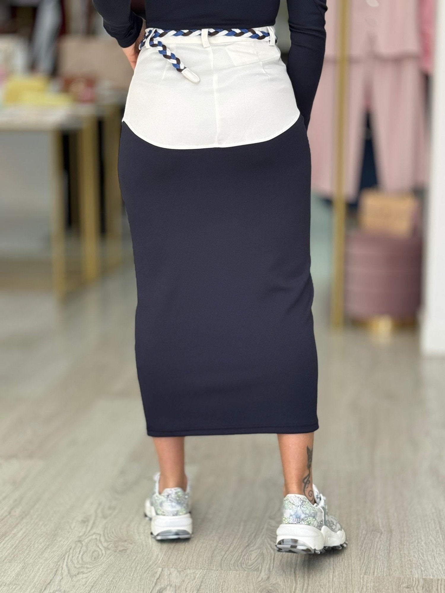 Saia Comprida com Tecidos Combinados