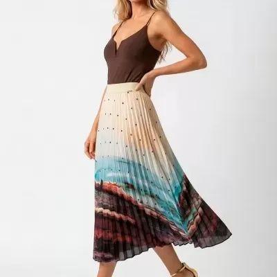 Saia Comprida Plissada com Padrão