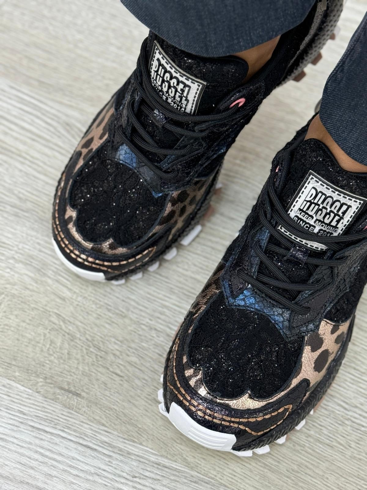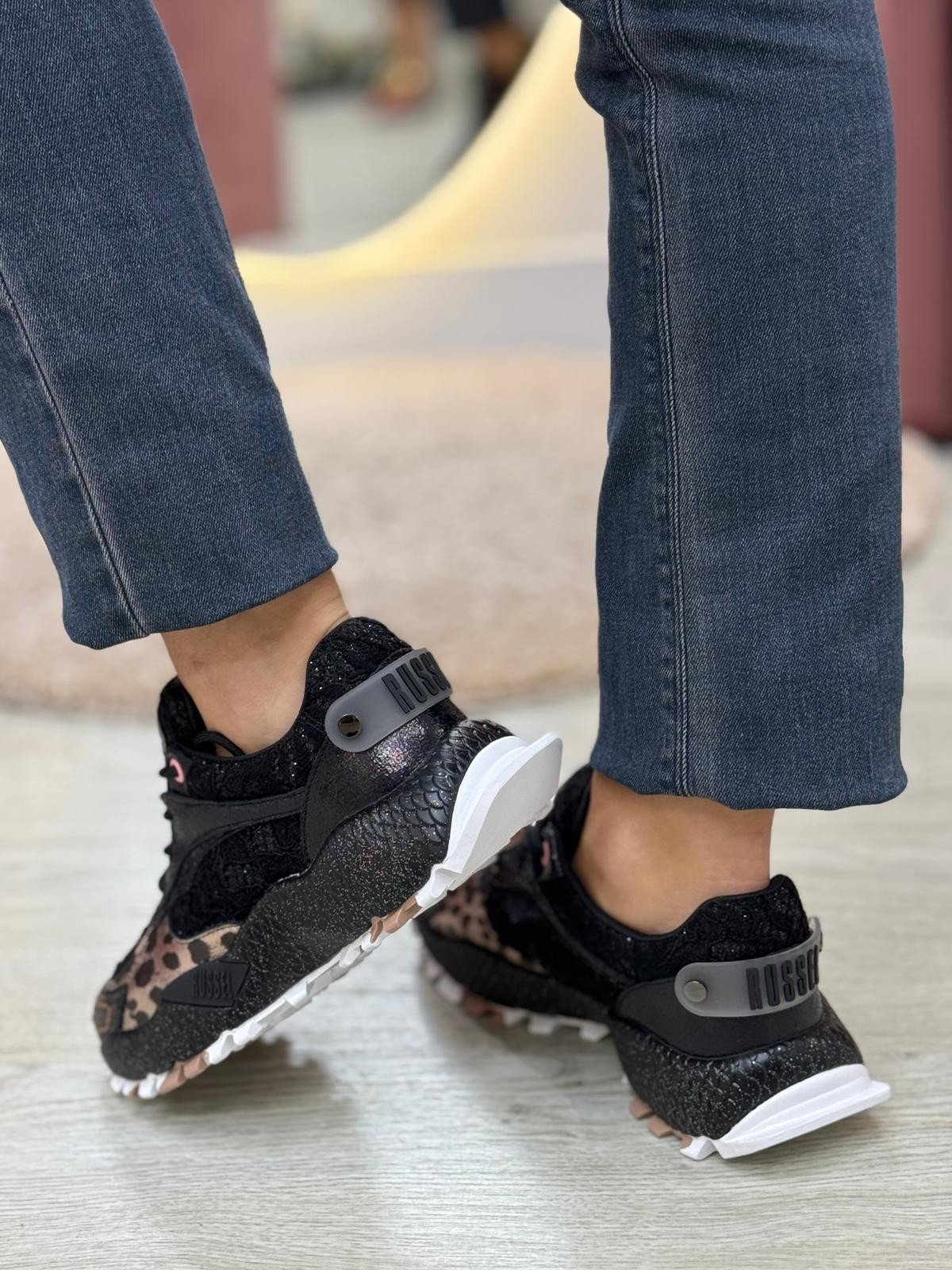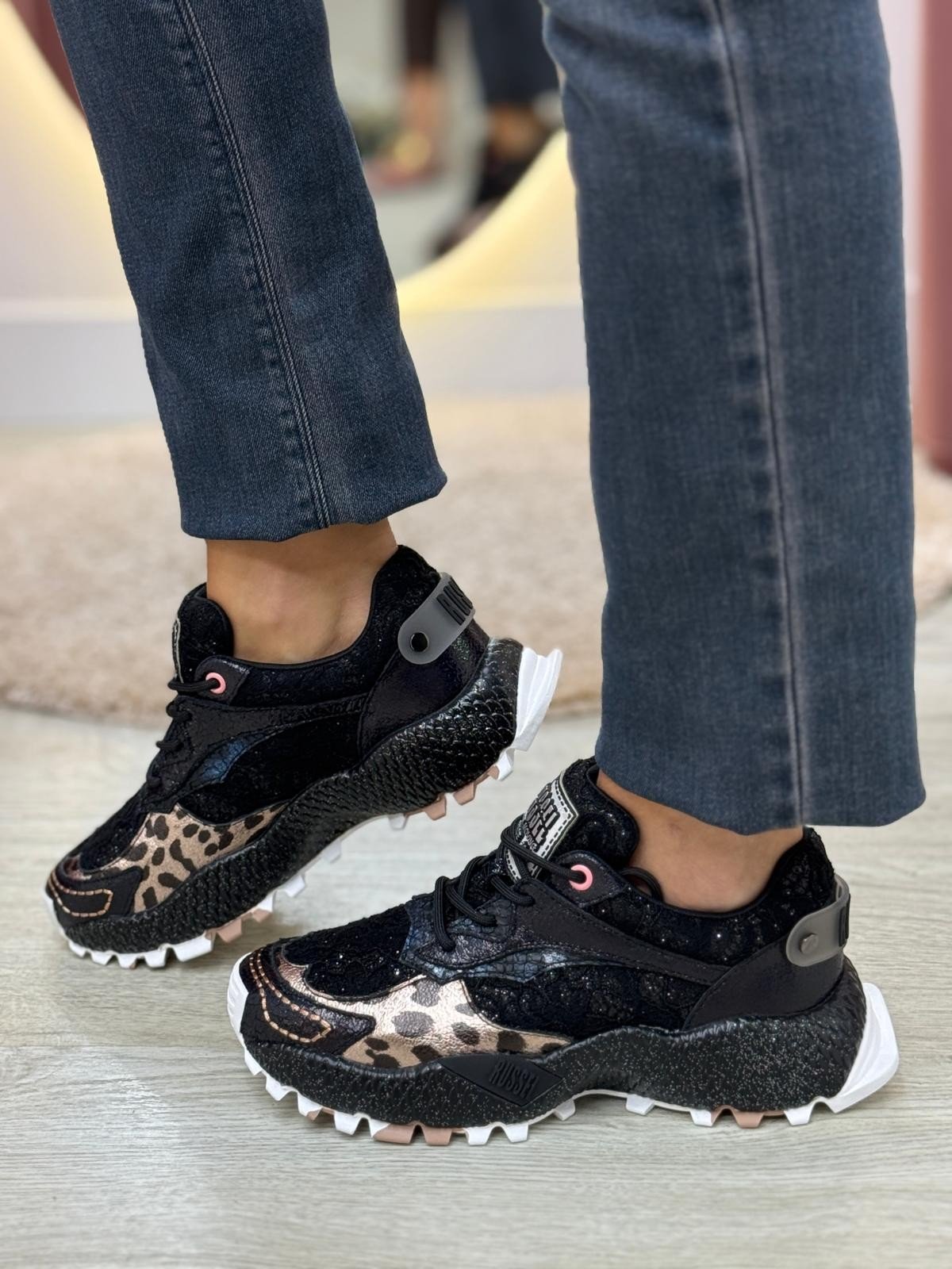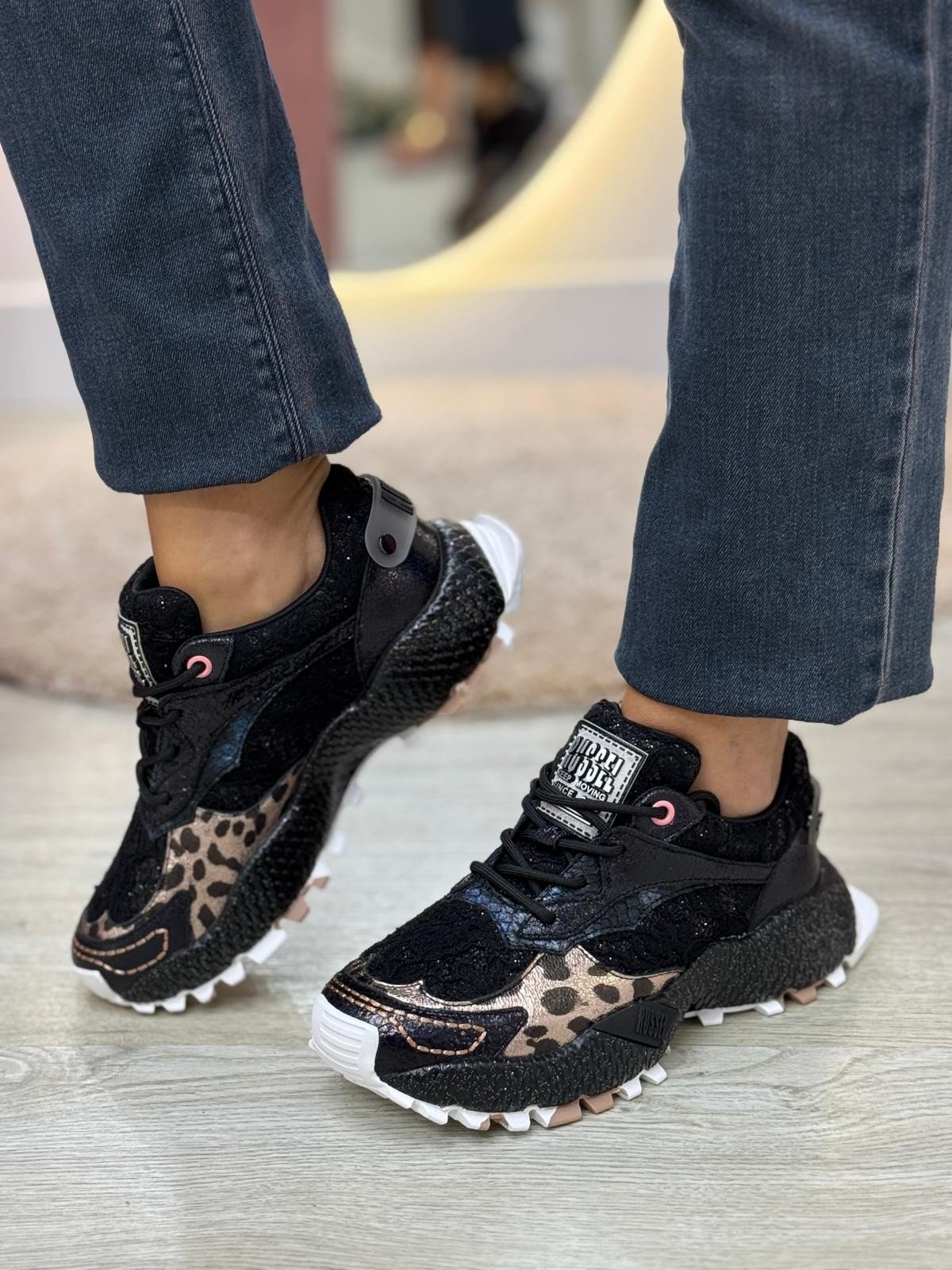 Ténis JANE BLACK com aplicação de brilhantes e várias texturas. Perfeitas para o dia a dia, garantindo o conforto, bom andar e resistência que precisa. Modelos práticos, versáteis e confortáveis. Sempre a seguir as tendências do calçado feminino. Material em pele com tecido interior, sola de borracha, palmilha personalizada pela marca.