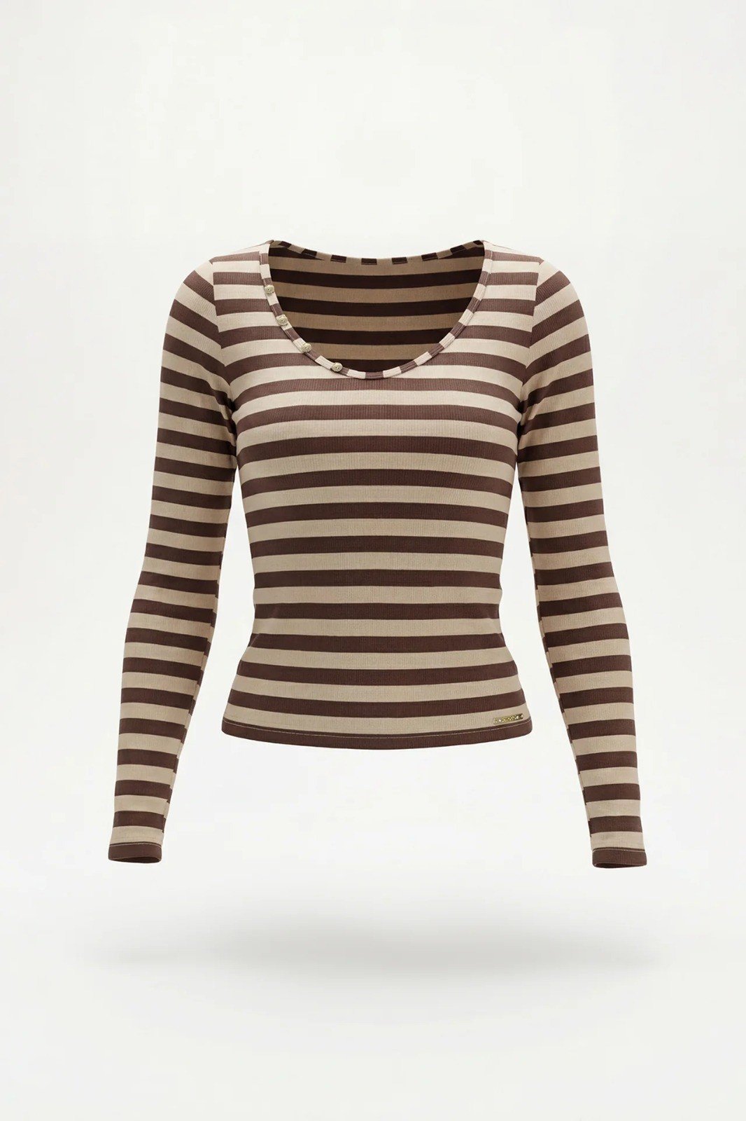 Top de manga comprida às riscas com decote redondo e detalhe de botões.