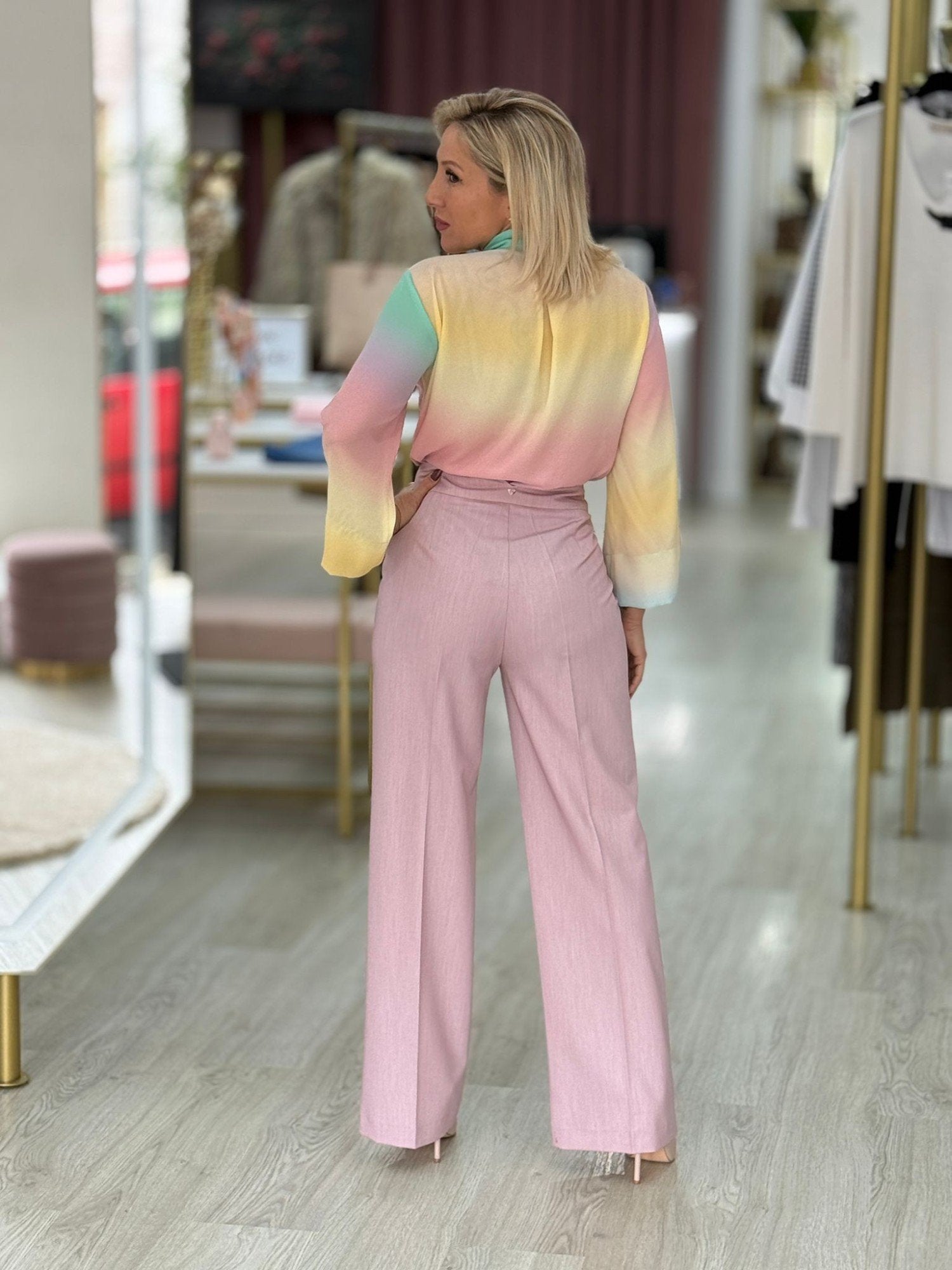 Túnica gola fita ajustável estampado tons pastel