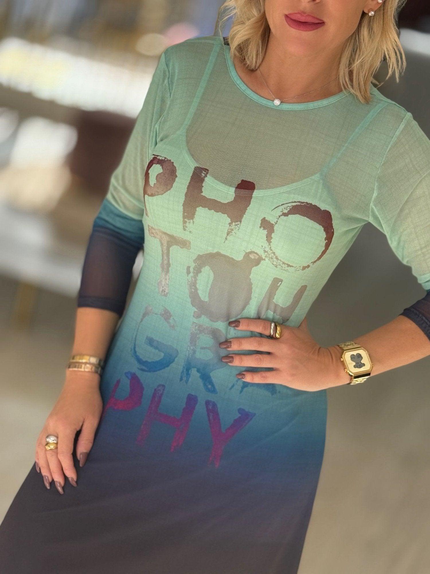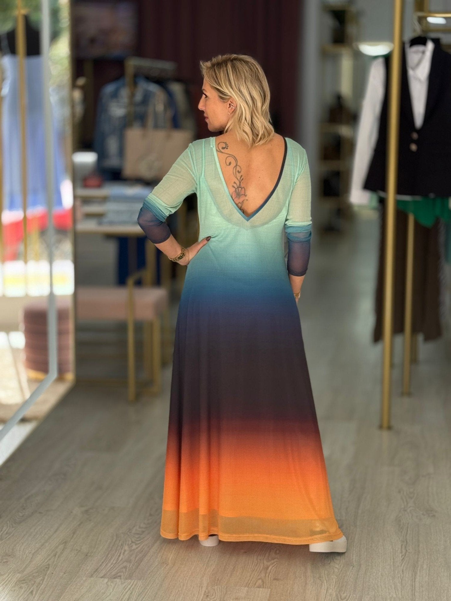 Vestido Comprido Estampado com Manga Comprida